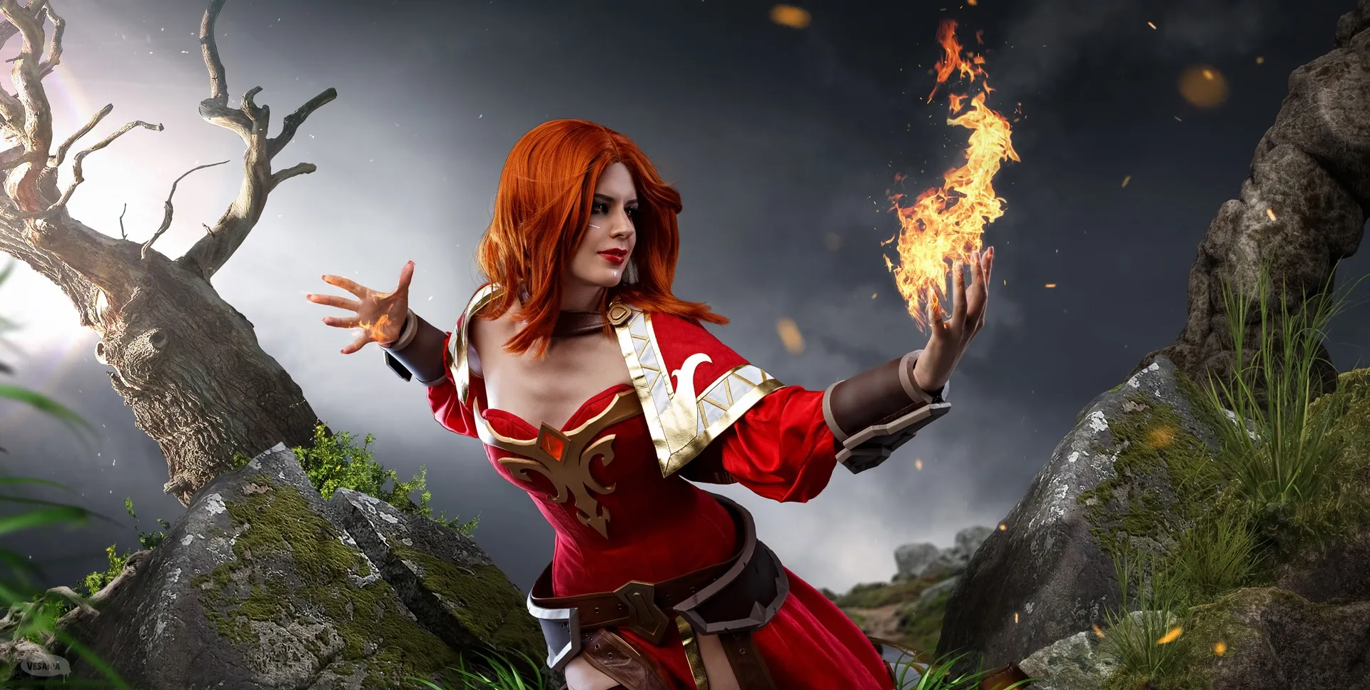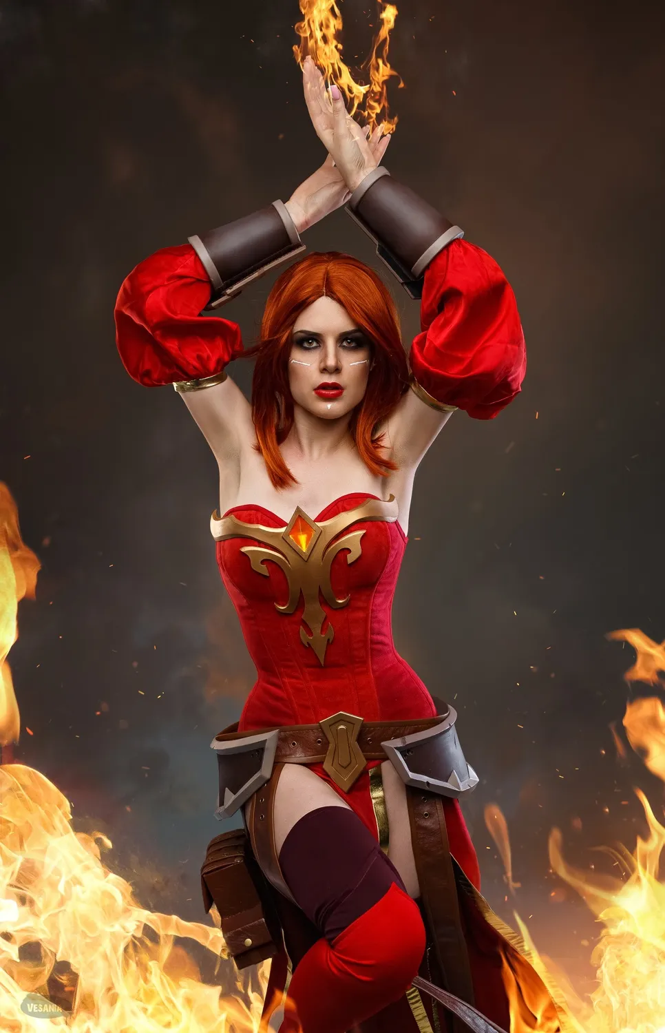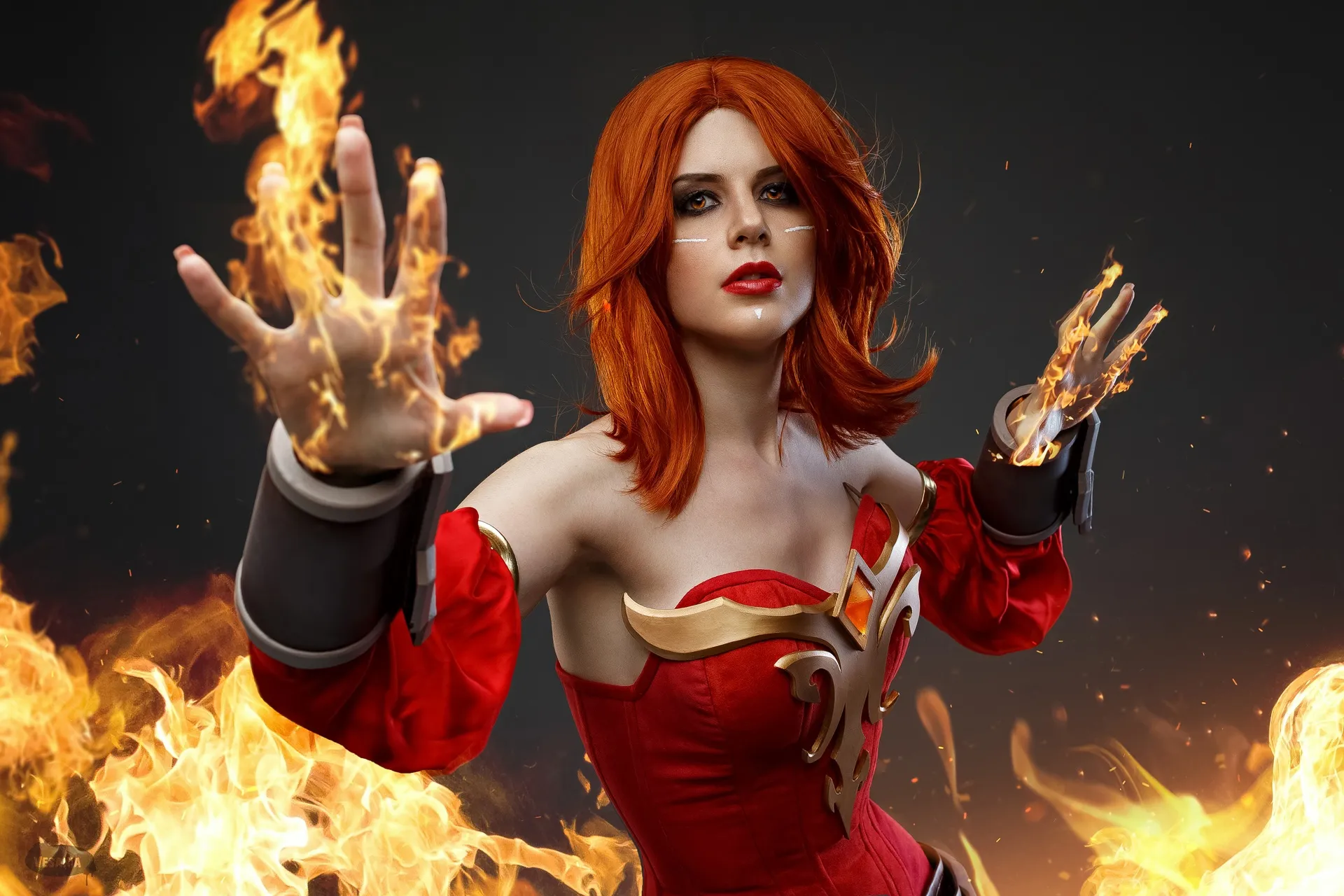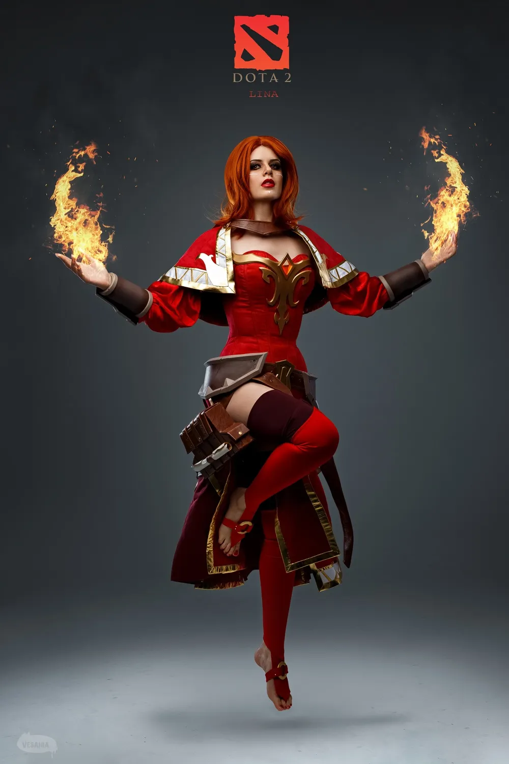 Model Alina Aneli made a cosplay of Lina, the fiery beast from Dota 2. For the basis of the costume she took an outfit from the line of Smoldering Journey items, which appeared in “Dota” in 2015. Photos are published in “VKontakte”.
